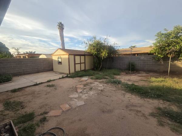 3 bedroom 2 bath house for rent in Yuma. House has carport parking, storage shed in back yard, large laundry room and has a small office room next to the dining room.