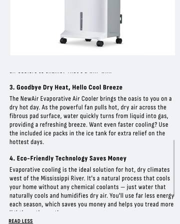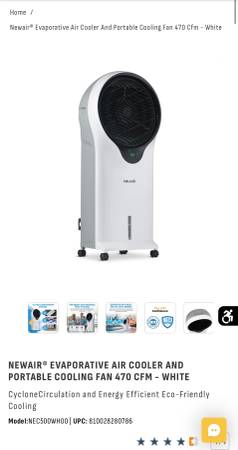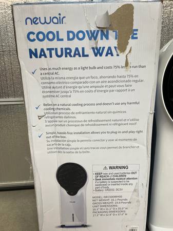 New: NEWAIR® EVAPORATIVE AIR COOLER AND PORTABLE COOLING FAN Your welcome to test before you purchase