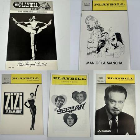 Playbill Lot Of 5, Man Of Mancha, The Royal Ballet, Zizi Jeanmaire, Seasaw,Lorenzo.