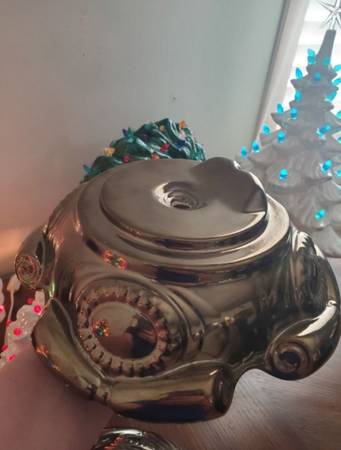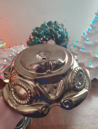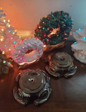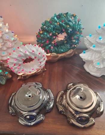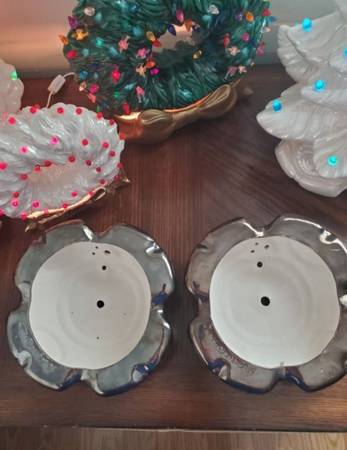Vintage Atlantic Mold 74' Ceramic Christmas Tree Bases. Antique Gold & Antique Silver Bases. Made in 1974. Measures 8 1/2" across. All in perfect condition. $20 each.