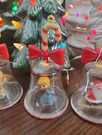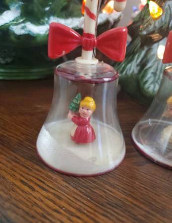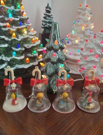 Vintage 4 Cloche Bell Christmas Tree Ornaments 1960's. Measures approximately 4" tall. Made in Hong Kong.