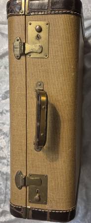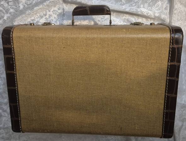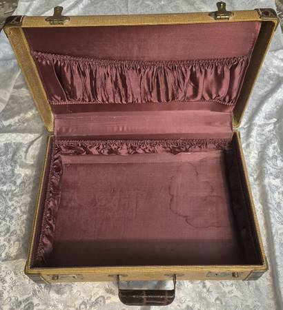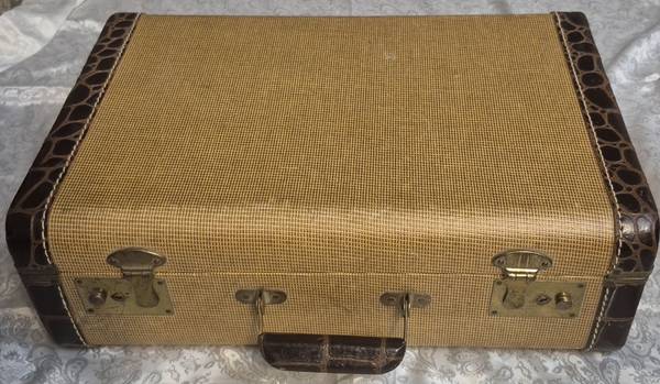 Antique suitcase in great vintage condition! 18½" wide, 12½" deep, 6" thick. Perfect for clothing use, as a vintage Prop, as a room decoration etc.