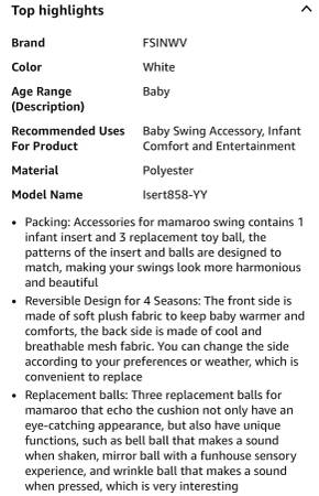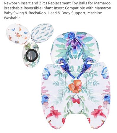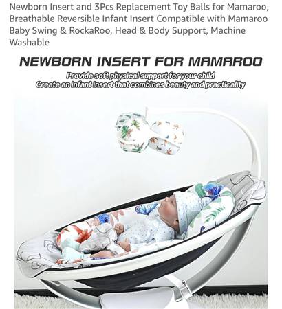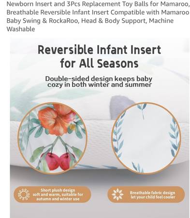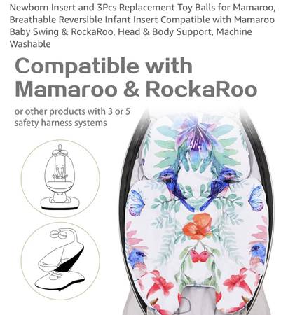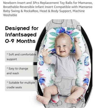 New: Newborn Insert and 3Pcs Replacement Toy Balls for Mamaroo, Breathable Reversible Infant Insert Compatible with Mamaroo Baby Swing & RockaRoo, Head & Body Support, Machine Washable