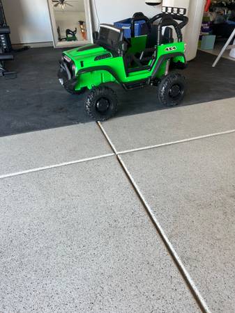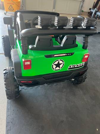 Toddler ride on Jeep style vehicle. 24V. Has Bluetooth, LED lights and light bars.