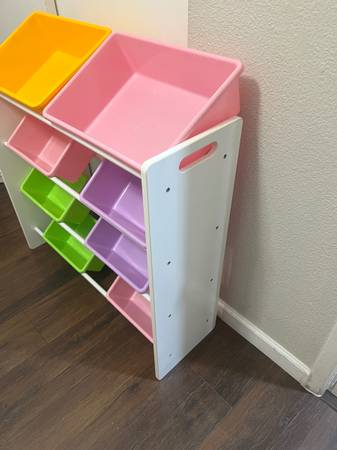 Toy Storage Organizer with 8 Plastic Storage Bins - $45