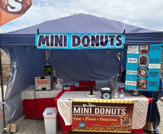 I am retiring and am selling my Mini Donut Pop-Up Tent Vendor Small Business. I have been involved in City events and other local events.