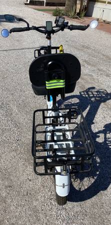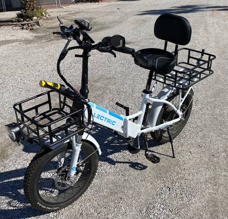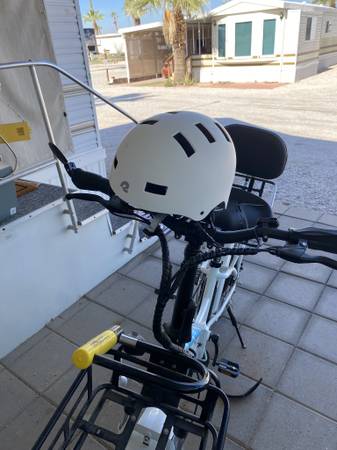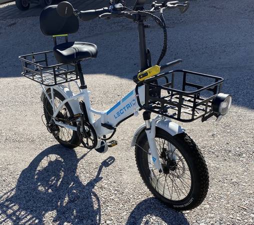 I have an LECTRIC XP 3.0 E-BIKE with Long RangeBattery (see purchase order pic) less than 1 mile (see odometer pic) use on it. I bought this 2+ years ago to use on our RV Trips. Ended up having lower back surgery and NOW CAN'T USE IT. Developed NEUROPATHY in both lower legs/feet and can barely even get on the bike. It's a safety issue to even attempt to use it. Bike ordered with front and rear baskets. I had added a front lite and oversized seat (see pic & original included) with back rest. Secondary Bike Lock included too. Received the upgrade kit, for the brakes, from manufacturer (never installed) and still have tire (Goop) ready to install. Invested about $1,500 into this bike and NOW CAN'T USE. The bike does "unlock: from 3 places to allow it to be folded. I want to get AS CLOSE TO $1,000 BACK FROM THIS GREAT BIKE, VIRTUALLY UNUSED. Check out the pics or ask questions via Craigslist e-mail ONLY. I HAVE NO WAY TO DELIVER ANYWHERE SO YOU WILL PICKUP HERE IN WELLTON, AZ. NO PHONE CALLS OR TEXTS.