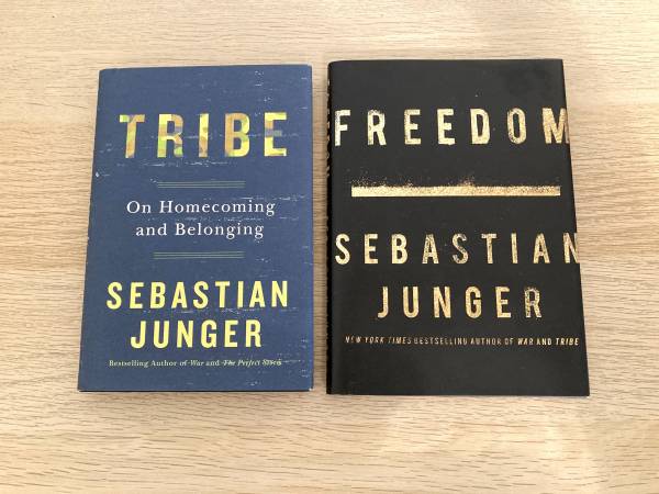 A couple of excellent hardcover books by Sebastian Junger: Tribe and Freedom. Both in excellent, like new condition.