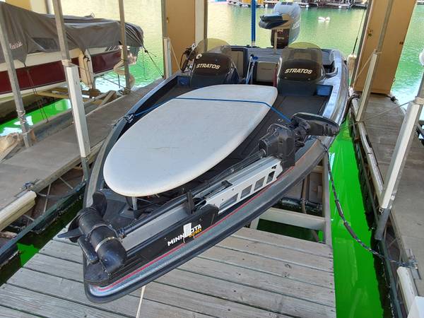 This is the perfect fishing package for someone who wants it all but doesnt have 80k to drop. 1999 Stratos pro elite 21 ft bass boat with low hour Johnson 225 two stroke (very little maintenance required) paired with a minnkota ultrex trolling motor. Garmin electronics package! AUTOMIX. Oil in one tank and fuel in another automatically mix. 100% fiberglass boat. No wood to worry about termites or rotting. 40 gal fuel tank last for days. Two live wells plus two other large storage areas in the back. Built in cooler or fish hold. Rod and gear storage galore. I keep my rods in the port-side box, my plastics in the middle and my lures plus my anchor in the starboard-sidebox. Newer carpet and upholstery. Three interstate batteries. 2021 Minnkota ultrex 24 volt trolling motor with foot control. Shallow water pole anchor. Has spotlock (GPS anchoring), autopilot, remote control, and depthtrack. Spotlock is a must-have. Top of the line! This trolling motor is awesome with tons of power. I keep the foot control loose so i can change feet and angles throughout the day. Paired with two new Garmin touchscreens (9 and 12) that have all the lakes... I have a 3rd 7inch Garmin touch screen that comes with it as well. 5k of new stuff sitting on the bow alone. Goes 60+ wide open. This thing is a rocket but I prefer to cruise around 30-40 for the best fuel economy. You won't ever be let down by Johnson's 225. (Only used in fresh water lakes.) They are well known for their reliability and longevity. Professional full service just done including lower unit oil, spark plugs, and impellers (I wasn't going to sell it for years but i have no good options for storing it). It also comes with a nice aluminum Stratos trailer that has brand new tires and connection wires. This is a fisherman's boat with exactly what you need, where you need it with a giant fishing platform to make comfortable, accurate casts all day long. I'd also be open to selling half ownership in the boat if you had a good storage option. These pics were taken in texas on lake travis btw. Tournament ready. $10500