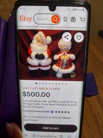 $80 OBO For the Clauses. Beautiful Piece of Vintage Christmas History, These were made in the 60's. all other vintage stuff very reasonable. Correl and Le Persil La Sauge Both marked way less than 1/2 of market value $20 ea. or take both for $30, Eggs $35 ea I am literally giving this stuff away!!!!!!!!!!!! I have a house full of old stuff.
