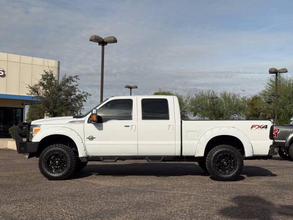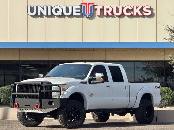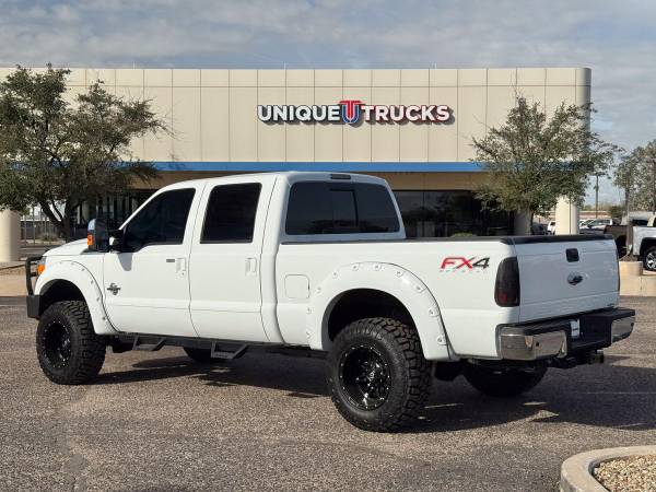 The Oxford White exterior on this lifted 2013 Ford F-350 SuperDuty Lariat Crew Cab 4x4 gives the truck a clean, sharp look right from the start. The color-key matching fender flares tie everything together, and the custom Ranch Hand front bumper adds a bold front-end style. The custom gloss black grille brings the whole look together, making this truck stand out the moment you see it.Inside, the jet black leather interior gives the cabin a smooth and comfortable feel. The full moonroof adds extra light and an open feel that makes every drive more enjoyable. The layout is simple and easy to use, giving you a clean setup that fits the truck’s strong look.This truck comes with a custom level kit that gives it the right stance without going over the top. It sits on brand new tires wrapped around gloss black wheels, giving it a clean and eye-catching look from every angle. The setup not only looks good but also adds better ground clearance and a solid ride.Power comes from the strong 6.7-liter PowerStroke V8 turbocharged diesel engine paired with a smooth 6-speed automatic transmission. This setup gives you great tow power, smooth acceleration, and steady performance whether you’re on the road or off the pavement. It delivers the kind of pull and control people look for in a diesel F-350.Inside the cabin, you get dual-zone automatic climate control that lets the driver and passenger set their own temperature. This makes long drives more comfortable and keeps everyone happy no matter the weather. Everything is simple to use with easy-to-reach controls.You also get a leather-wrapped steering wheel with built-in controls, making it easy to handle your audio, phone, and other settings without taking your hands off the wheel. It adds comfort and convenience every time you drive.The Lariat Ultimate Package adds even more features, including heated and cooled front seats that keep you comfortable year-round. These seats warm up fast in the winter and cool down quickly in the summer, making the truck easy to enjoy in any climate.This F-350 also comes with the FX4 Off-Road Package, giving you skid plates, off-road tuned suspension, and extra features that help the truck handle rough roads. The remote start system adds extra convenience, letting you start the truck from a distance so it’s ready before you even climb in.This lifted diesel 2013 Ford F-350 SuperDuty Lariat is fully serviced and ready to go. It’s clean, eye-catching, and ready to turn heads everywhere it goes. The truck is set up for its next owner and offers the kind of features that make it ready for work, play, or daily use.At Unique Trucks, the price you see is the price you pay—no hidden markups and no addendums. We also offer our no-obligation delivery service, where the truck gets delivered right to your doorstep. You can test drive it from your home, make your best deal over the phone, and if you don’t like it, you don’t buy it. We love trade-ins and encourage you to come in and check out what we have. ________________________________________ 2013*2012* 2014* FORD* F-350*F350* F-350* SUPERDUTY* SUPER* DUTY* DIESEL TRUCKS* FORD TRUCKS* LARIAT* LIFTED TRUCKS* FORD TRUCKS* LARIAT* SUPERDUTY* LIFTED FORD TRUCKS* LIFTED FORD* POWERSTROKE* DIESEL* TRUCKS* LOW MILES* LOW MILEAGE* RELIABLE* ONLY*