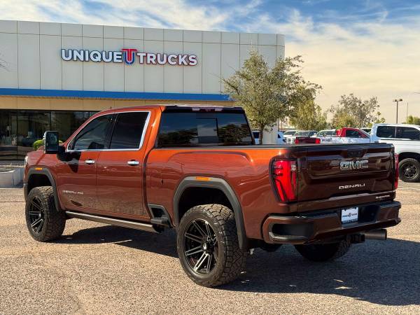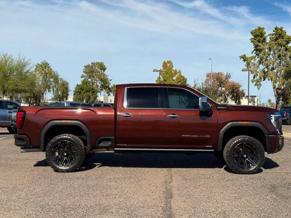 This lifted 2024 GMC Sierra 2500HD Denali Ultimate is a true head turner, finished in the rare and eye catching Redwood Metallic paint. The deep color shines in the light and sets this truck apart right away, giving it a bold look that stands out anywhere it goes.Inside, the Denali Ultimate Alpine Umber leather interior feels rich and clean with a sharp layout that matches the outside style. The cabin is quiet, comfortable, and built for long drives, with premium materials and a layout that feels well thought out from front to back.This Sierra sits strong on custom 22 inch gloss black wheels wrapped in Nitto Recon Grappler all terrain tires. The wheel and tire setup gives the truck the perfect stance while still keeping a smooth ride and solid grip for daily driving or rough roads.Power comes from the proven 6.6 liter Duramax turbo diesel V8 paired with the smooth Allison 10 speed automatic transmission. This setup is built to tow and haul with ease, giving you steady power, smooth shifts, and confidence behind the wheel.The Redwood Metallic exterior really makes this Denali Ultimate pop, especially paired with the chrome accents, animated LED headlamps, roof marker lamps, and the GMC MultiPro tailgate. Every detail works together to give this truck a clean and high end look.Safety features are loaded, including forward collision alert, front pedestrian braking, automatic emergency braking, lane departure warning, rear cross traffic alert, trailer side blind zone alert, front and rear park assist, HD surround vision, and a safety alert seat to help keep you aware on every drive.This truck is ready for work with an auto locking rear differential, two speed Autotrac transfer case, trailer brake controller, full trailering package, vehicle trailering app, and hill start assist. Everything is set up to make towing and hauling easier and more controlled.Technology is front and center with the premium GMC infotainment system, large 13.4 inch touchscreen, built in navigation, wireless Apple CarPlay, wireless Android Auto, SiriusXM trial, Bose premium sound system, digital driver display, bed view camera, wireless charging, remote start, and keyless open and start.Comfort is just as strong with 16 way power front bucket seats, heated and cooled front seats, heated rear seats, memory settings, a leather wrapped steering wheel, power assist steps, power folding tow mirrors, spray in bedliner, LED cargo lighting, and a power rear sliding window.At Unique Trucks, the price you see is the price you pay with no hidden markups or addendums. We offer no obligation delivery right to your doorstep so you can test drive from home, make your best deal over the phone, and walk away if it is not the right fit. We love trade ins and invite you to come in and check out this Denali Ultimate for yourself. __________________________________________________________________________________________________________________ 2024* 2025* 2026* GMC* SIERRA* 2500HD* 2500* DURAMAX* ULTIMATE* DENALI* LIFTED* GMC TRUCKS* SIERRA* GMC TRUCKS* LIFTED TRUCKS* SIERRA* ULTIMATE EDITION* DURAMAX* DIESEL* ALLISON TRANSMISSION* DENALI* CREW* CREW CAB* DIESEL TRUCKS* LOW MILES* LOW MILEAGE* RELIABLE* ONLY*