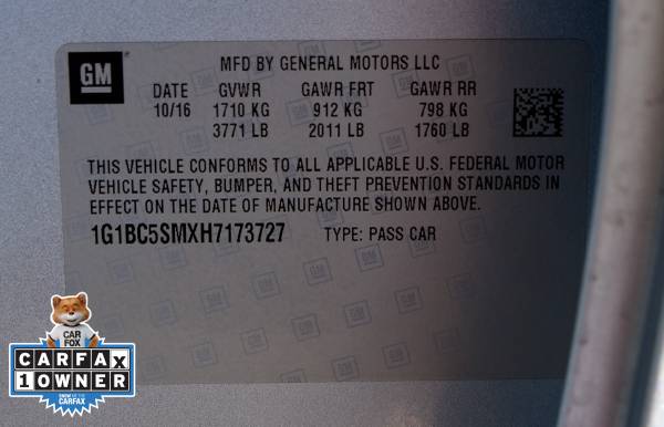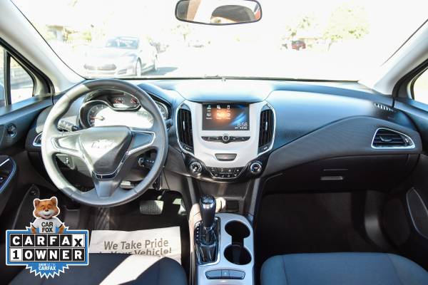 One-Owner Carfax Certified 2017 Chevrolet Cruze LS Auto Sedan in Arctic Blue Metallic Exterior and Jet Black Cloth Seat Trim Interior Equipped with 1.4-Liter 4-Cylinder Turbocharged Engine Paired with 6-Speed Automatic Transmission Rated at 153 Horsepower.
