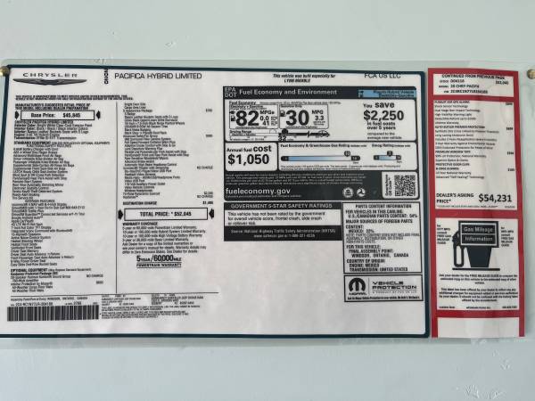 2020 Chrysler Pacifica Hybrid Limited LOADED....
