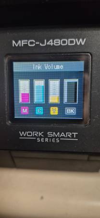 BROTHER Printer MFC-J480DW w/ ink Printer, copier, scanner, fax Auto feed for scanning/copying Works great, just printed bird pic! Just don't use much and need space!