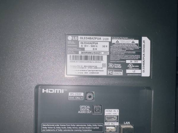 slightly used oled 4k tv for sale. It is 48 inches. I plan on throwing the stand away as I am moving across country, but if you want it, I can throw it in as well for another 10 bucks. Comes with...