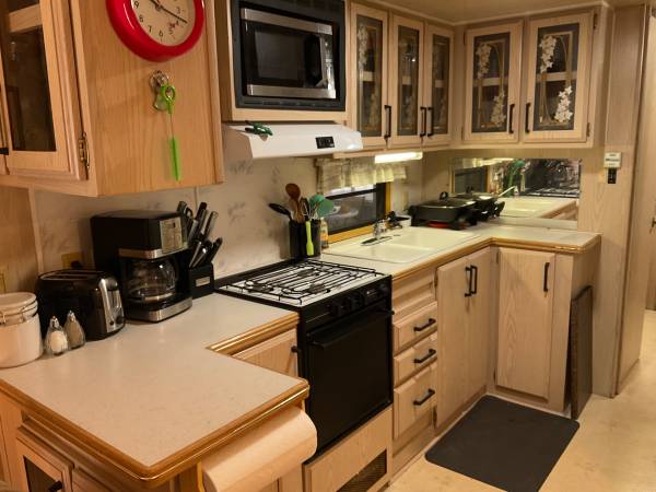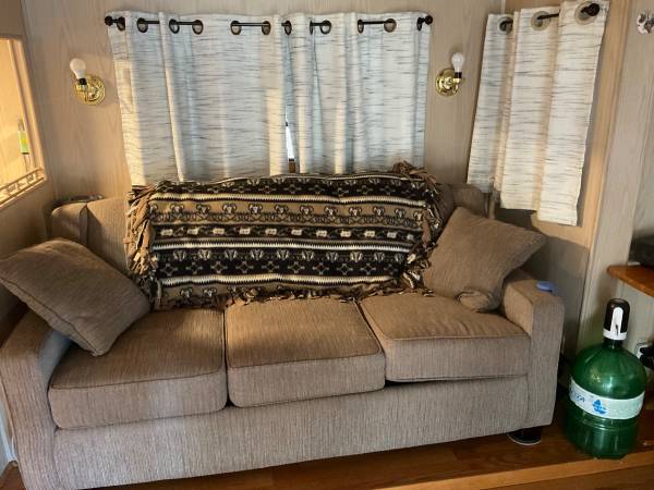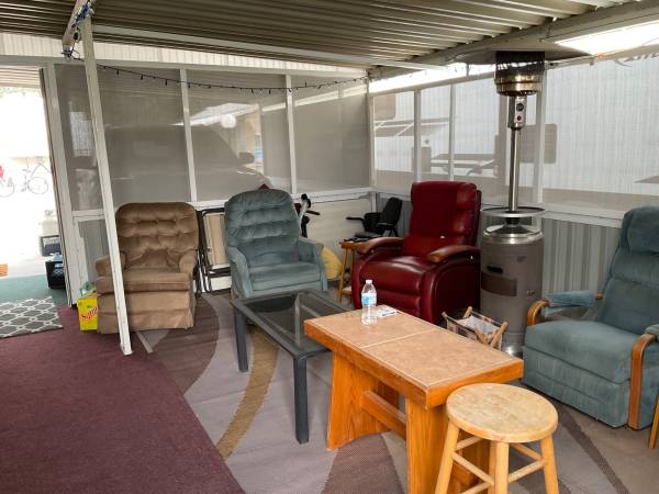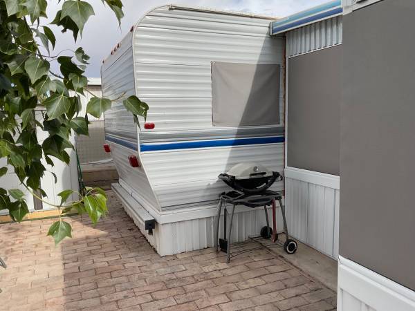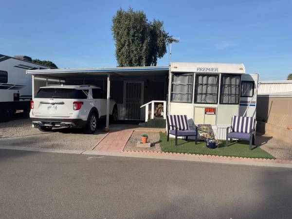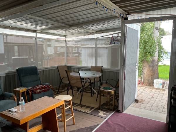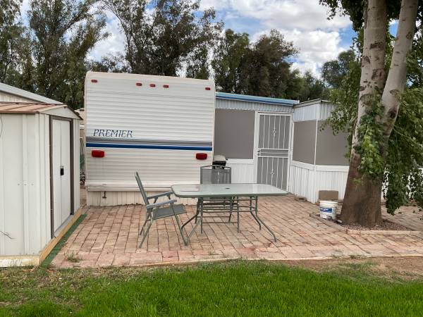 1997 premier park model , fully furnished. Recently renovated , new curtains thru out , laminated flooring, dryer, 3 tv’s, queen sofa bed, a/c , Weber bbq, new outside sun shades window coverings, roof resealed, 18 x 25 Arizona room all furnished with new carpet, 2 sheds , situated in OG RV RESORT, THIS is a gated park . Can be viewed in lot 86 @ 3225 west 8th street . Immediate possession