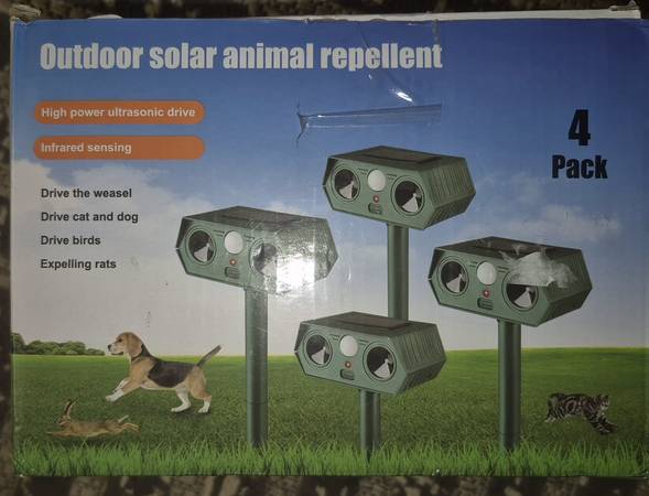 BRAND NEW 4-piece solar animal repeller, motion detection, infrared sensors