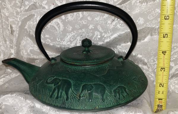 Beautiful CAST IRON teapot with images of elephants and mountains...VERY HEAVY! Excellent condition.