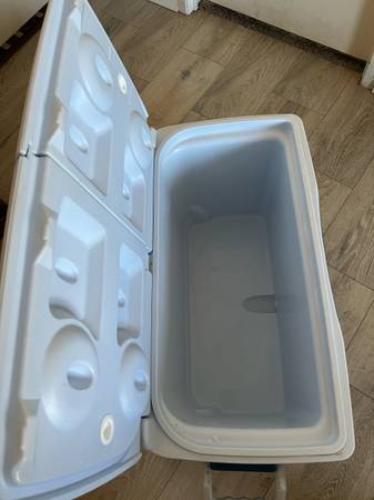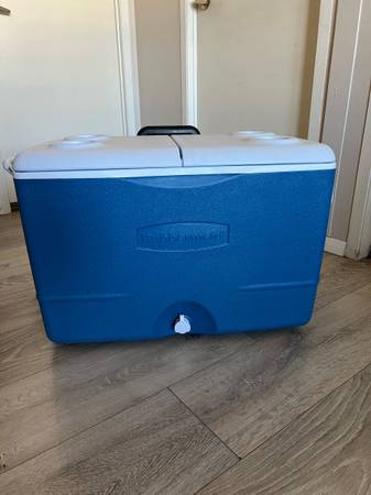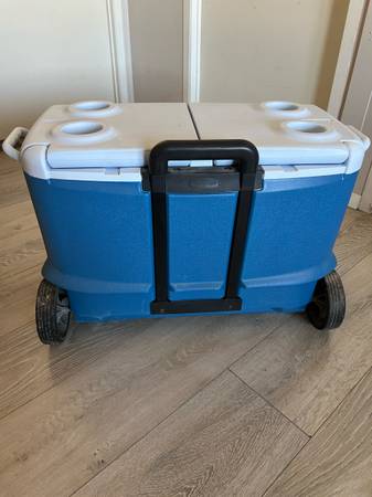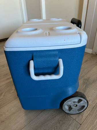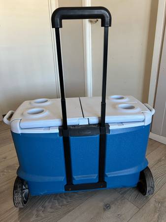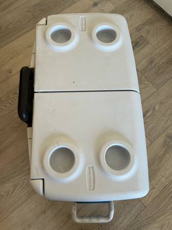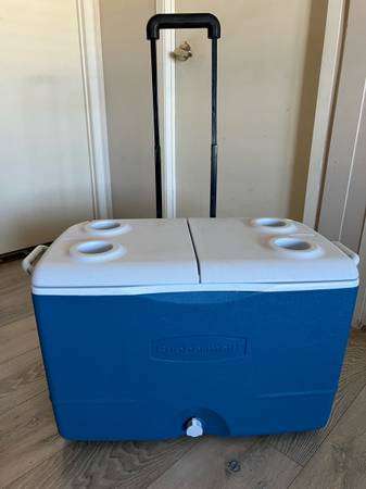 Vintage RubbermaidTwo Lid Rolling Cooler w handle 30 dlls Firm price Cash only