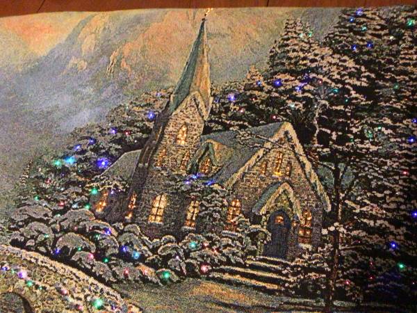 Nice Christmas Wall Tapestry. Double sided. LED Christmas on one side. The other is same image in summer no LED. Battery Operated