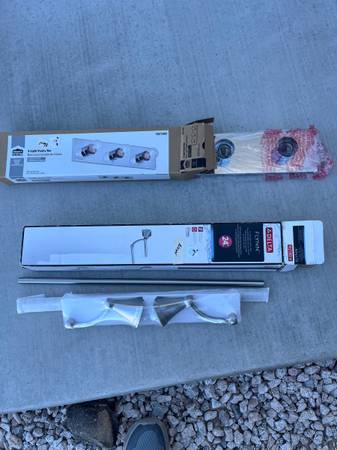 New never used 3 bulb light bar. $7. New 24” towel bar $8…