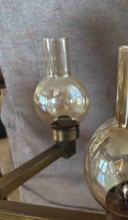 5 bulb Iridescent Glass globes 24” wide Hangs 19”