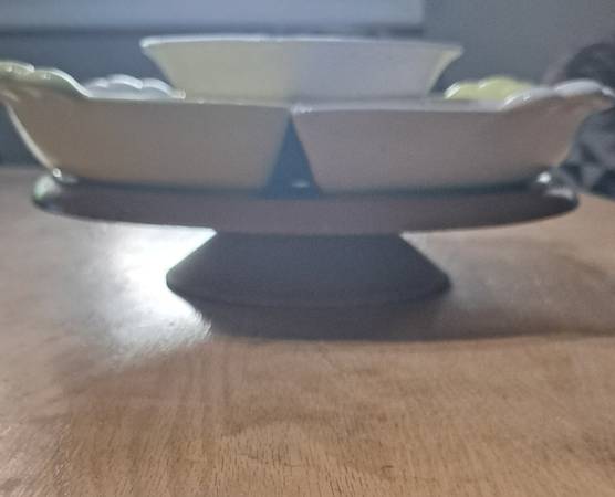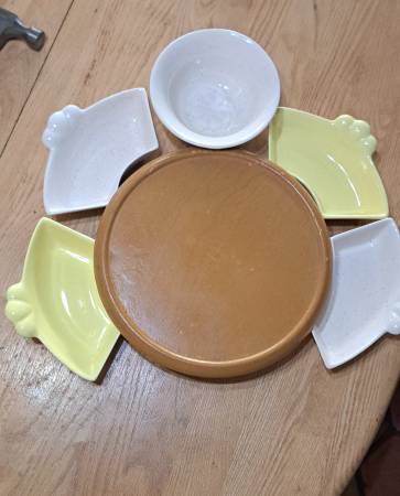 Vintage Doranne Of California Pottery J31 Lazy Susan Divided Dish Set Yellow and cream (One tiny chip)