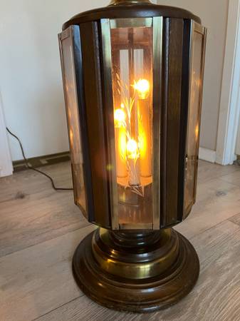 Wood & Brass Table lamp Works Good No Problems 80 dlls Firm price Cash Only
