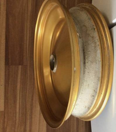 2) 15” x 4” wheels. Hole Diameter is 1” on one side, 13/16” on the other Paint excellent