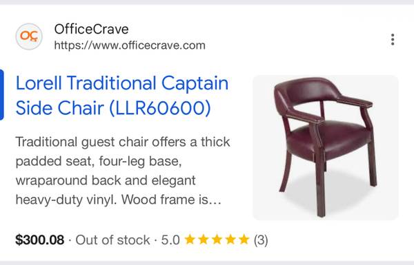 (2) Lorell Traditional Burgundy Captain Side Chairs. $130 for both