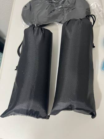 New: Airplane Foot Rest Set. Includes (2) Airplane Foot Hammocks, 2 Eye Masks, 2 sets of Earplugs