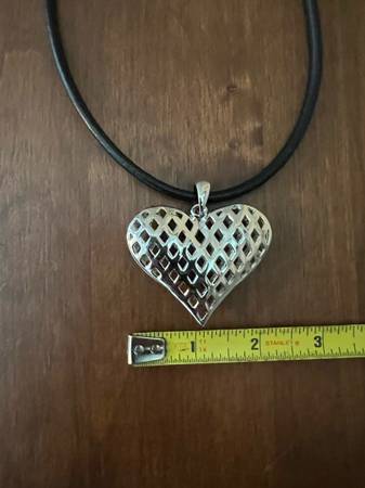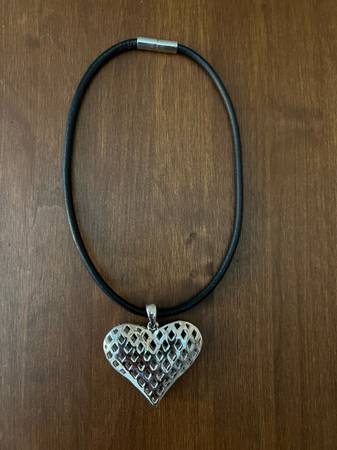 All my items listed are located in Coyote Ranch MHP in the Foothills. I purchased a few of these super cute necklaces as gifts and never ended up giving them away. The heart is roughly 2 1/2” wide. The 17 1/2” leather chain has magnetic ends that clasps tight so easy to put on and off but won’t come undone until you pull it apart. 3 Available. $8 each. or all 3 for $20.