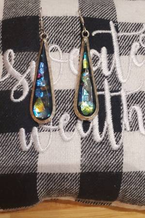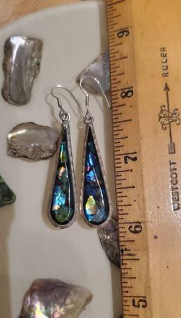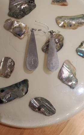 Vintage Sterling Silver Long Marquise Abalone Earrings. Has beveled side & measures approximately 2" long. Stamped 925. In perfect condition.