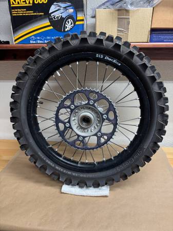 2015 Husqvarna FC450 OEM DID DirtStar Rear Wheel Assembly. I purchased another set of rims for the Husqvarna so this factory wheel ended up extra. This includes a Michelin Starcross 5 tire size 110/90-19 and a 50T Rear Sprocket. The rim size is 19x2.15 and this assembly should fit 08-23 KTM/Husqvarna models 125-450 SX, SXF, XCF, FC, TC and GASGAS models. This is currently just taking up space in my garage so all reasonable offers will be considered! Phone number is in listing so call (preferred)or text if interested. Please leave a message if interested!!!