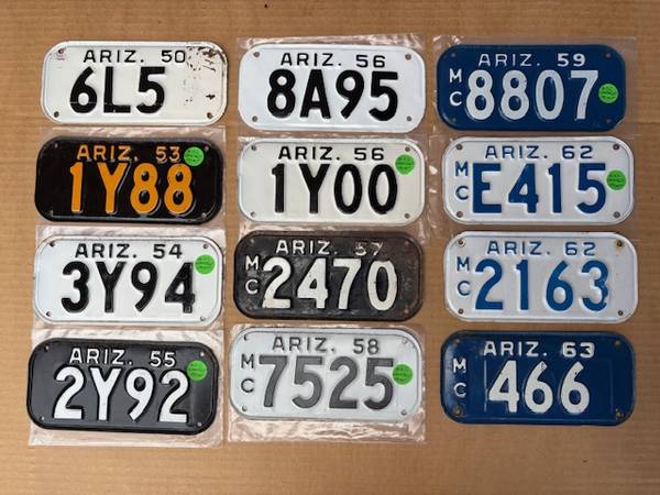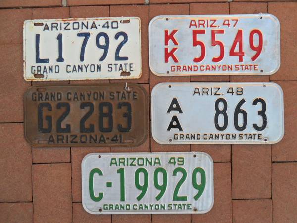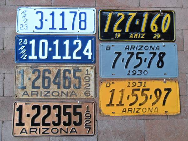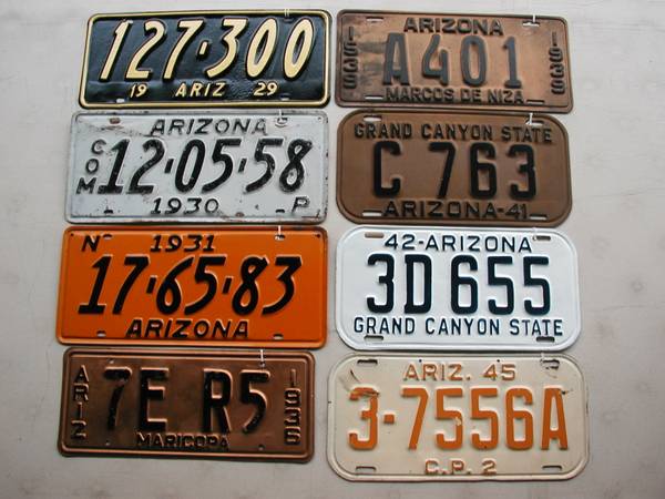 BUY- SELL- TRADE. LICENSE PLATE COLLECTOR SELLING ARIZONA DMV CLEARED PLATES FROM: 1923 – 1979 THAT YOU CAN REGISTER TO YOUR CLASSIC VEHICLES.
