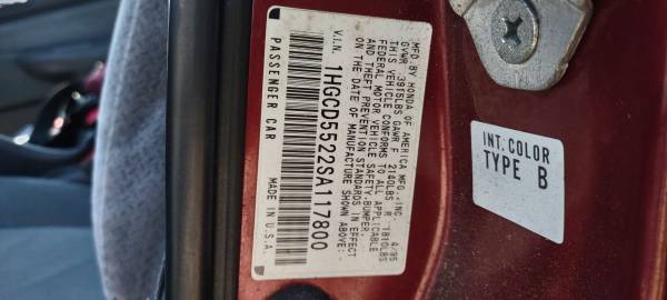 1995 Honda Accord DX low miles 130k two new tires, new plugs, new distributor, windshield wipers, was storage for 20 years, regular oil changes, very nice interior no rips, no rust, five speed, good clutch, brakes, new windshield, new mirrors, KNR cold intake 3 half inch, starts right up, new battery, Bose speakers,