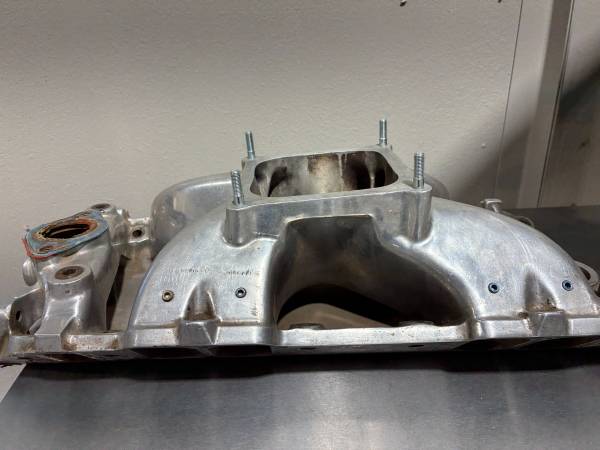 polished bbc intake manifold...boat..hot rod..etc...square port...dominator opening ..or adapt down to a 4150 opening...good condition...290.00...if ad is up its available...