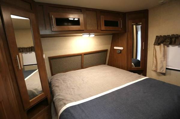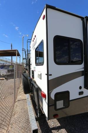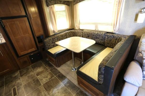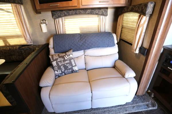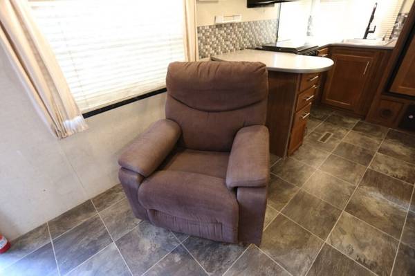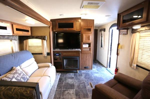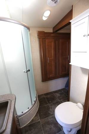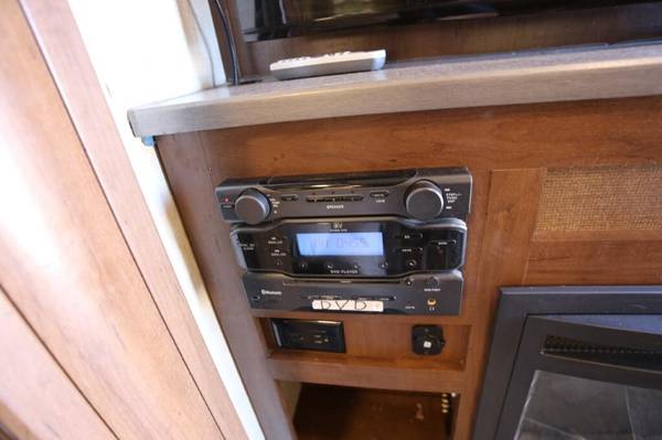 HALF TON SERIES, ALL SEASON PACKAGE, 2 SLIDES, SLEEPS 4, LOADED WEIGHT 11,095, UNLOADED 7295, ELECTRIC AWNING, ELECTRIC TONGUE, ELECTRIC TONGUE JACK, BIKE RACK, SPARE TIRE, 12 GALLON ELECTRIC WATER HEATER, SOLAR CHARGER, 30 AMP, PASS THRU STORAGE, ALUMINUM STEPS, REAR KITCHEN, STAINLESS MICROWVE, STAINLESS OVEN, GAS GRILL COOKTOP, FRIDGE, PANTRY, PLENTY OF COUNTER SPACE, FANTASTIC FAN VENT, RECLINER SEAT, THEATRE RECLINER SEATING, U SHAPED DINETTE, TV, STEREO WITH DVD, EELCTRIC FIREPLACE, ALL ENCLOSED BATHROOM, NIGHT SHADES, QUEEN WALK AROUND BED, HUGE LINEN CLOSET IN SLIDE, DRAWERS AND LINEN CLOSETS, TV IN BEDROOM. CLEAN INSIDE AND OUT. NO SMOKERS.