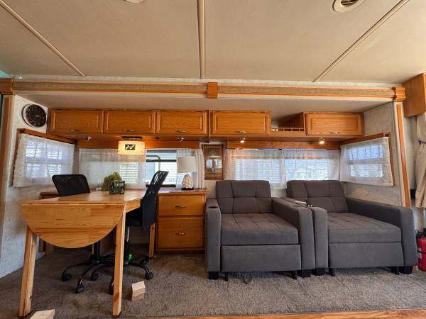 2005 Winnebago Journey 36G with a C7 CAT 350 hp engine on a Freightliner XC chassis, this beautiful class A has aged like fine wine and is available to view today! The exterior has tons of luggage storage, a 7500 Onan Quiet Diesel generator, basement A/C and beautiful paint. The interior has a modern layout, one slideout in the living area with a hide a tv that automatically rises from the hide a cabinet, upgraded couches with charging ports, and the original kitchen with corian countertops, electric/gas 4 door refrigerator, and convection microwave. The bathroom has a corner shower with a glass door, and washer/dryer hookups in the toilet room. The master bedroom also has a slide, a walk around queen bed with a big closet and all real wood for the cabinets and floors. Has a 350 hp Caterpillar C7 Turbo Diesel Engine with a 6 speed Allison Transmission, only 86k miles on this beauty, call us with any questions or come in for a walkthrough!