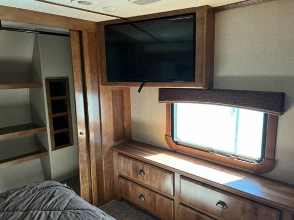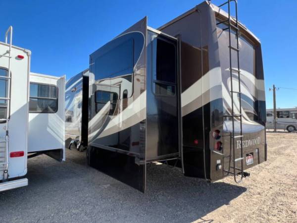 Get ready to take a trip with this 2018 Thor Industries Redwood 3991RD! This coach has enough room to bring along the whole family on any trip. The exterior is in great shape with no sun fade nor any scratches on the paint! The interior has 4 slides in the back and 1 bedroom slide so just imagine all the space you will have! The kitchen has a 3 burner stove, microwave, and an oven to whip up your world famous meals for the family! There’s a huge refrigerator and pantry to store food too. The island doubles as a sink and there is also a dishwasher on top of that! The living room has 2 couches that pull out into a bed and a normal couch in front of a flatscreen TV! The bedroom has a queen size bed that feels like the clouds and a huge closet with a water hookup to add a washer/dryer of your choice! The bathroom has a large walk-in glass door shower that has tons of space to walk around! Act fast and make sure to take a look at this coach before it is gone!