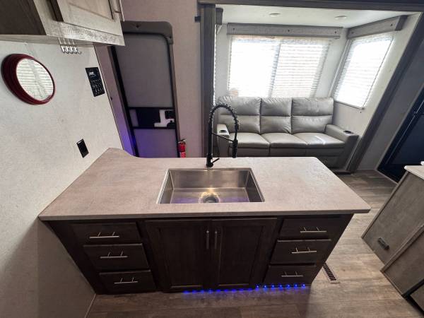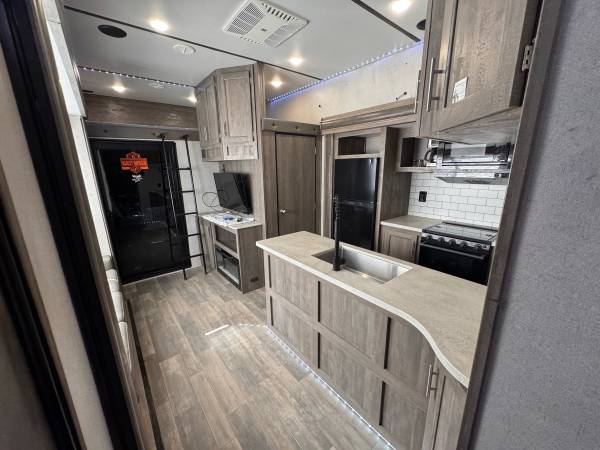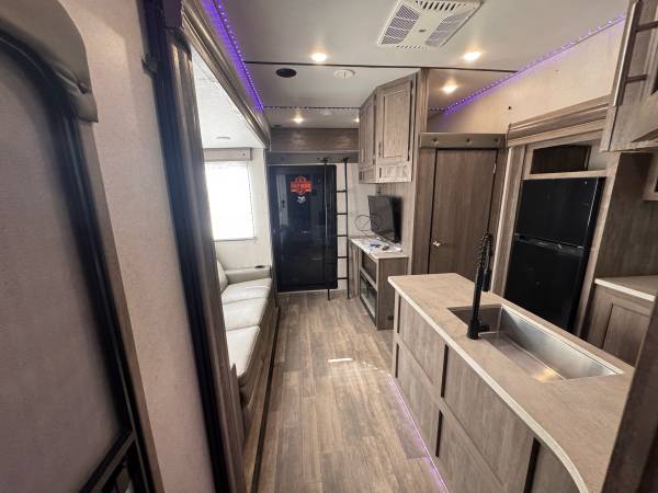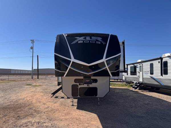 Dune season is here! This 2021 XLR Boost by Forest River with 3 slides, a 13 ft garage, can sleep 10 people and much more. Walking around there’s electric front jacks, rear scissor jacks, 2 power patio awnings, a fuel station, outside shower and exterior storage. The interior greets you with a fully loaded kitchen with refrigerator, gas cooktop, oven and microwave. The living area has a big recliner couch in front of a flatscreen TV, fireplace, top bunk sleeping area and the 13ft garage has electric beds and a half bathroom. The master bedroom has a walk around bed with easy access to the bathroom. Come in and view today before its gone!