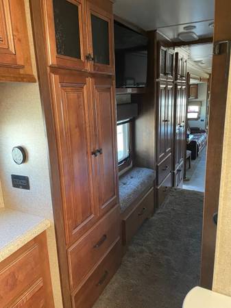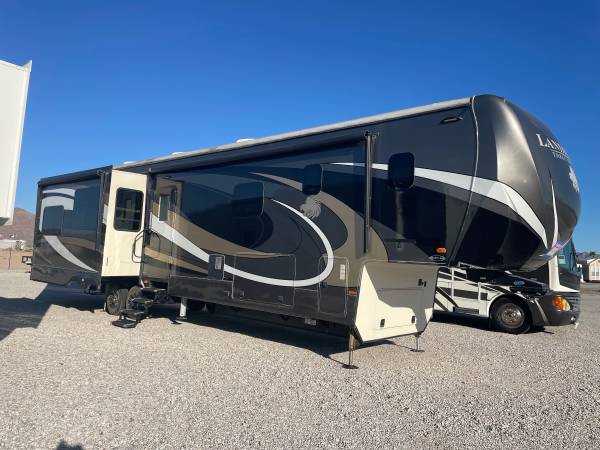 44’ Heartland Landmark. Triple slide, 3 a/c units, 2 restrooms, stainless appliances, good tires. Beautiful quality work. Impressive, must see! Everything works. No issues. $59,000.