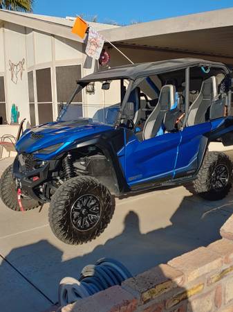 Herre is the fabulous RMAX4 Limited edition. With this you get electronically controlled shock adjusters{no more getting out to adjust, shift on the go}, winch, AZ street ready, almost new Tusk Terribites{400mi only} side mirrors, spare tire, screened back tarp, half windshield, Yamaha Adventure pro with navigation, transverable Yamaha Exended Service warranty{YES} good till 5/30/2026, am/fm bluetooth sound system 92zero-64two-zerozerofiveseveen