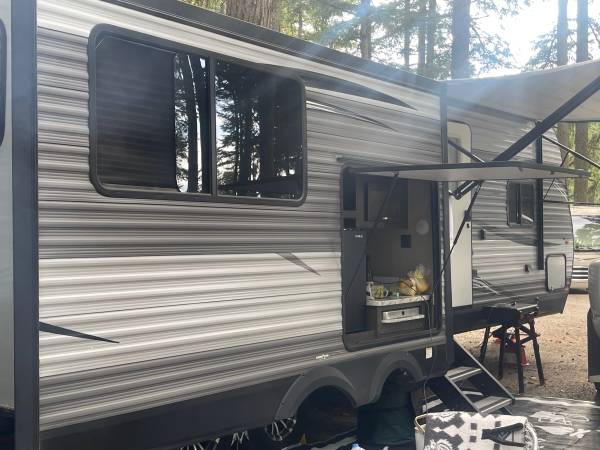 Selling our 2020 Jayco Jayflight 31MLS never lived in Trailer specs are: Sleeps 4 -31MLS -Length: 35.5 bumper to tongue, 31’ livable -Width: 8’ -Height: 11’ 7” (+/- 1’ more with AC unit) -Interior...