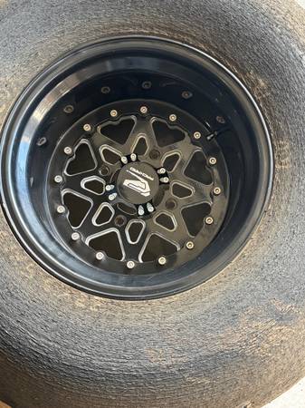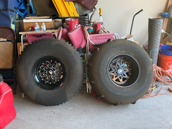Packard light weight wheels Rear 32x13.5 12 paddle, front 32x10 Mohawks very nice like new no scratches, no leaks no plugs. Two lightly used trips on them. Wife doesn’t like the dunes.